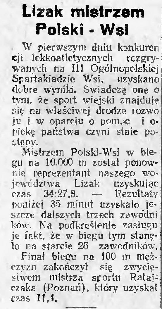 Jedyna znaleziona pamiątka z tego okresu dotycząca sławnego żurawickiego biegacza Władysława Lizaka (zmarły kilka lat temu i spoczywa na Cmentarzu w Wyszatycach).