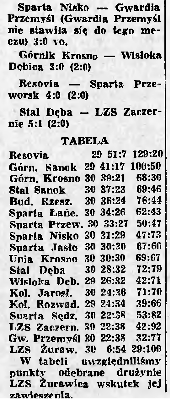 - Dnia 02.10.1955 r. Sparta Jasło – Żurawianka 7 : 0