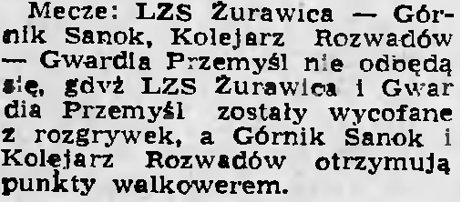 - Dnia 07.11.1955 r. Żurawianka – Kolejarz Jarosław 0 : 3 vo