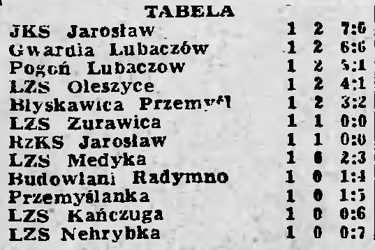 Oto wyniki Żurawianki w omawianym sezonie: Dnia 12.04.1959 Żurawianka - RzKS 0 : 0 (walkower 3 : 0), Dnia 19.04.1959 LZS Nehrybka - Żurawianka 2 : 6, Dnia 26.04.1959 Żurawianka - LZS Medyka 4 : 0, Dnia 03.05.1959 Żurawianka - JKS II 2 : 1, Dnia 10.05.1959 Błyskawica Przemyśl - Żurawianka 4 : 1, Dnia 17.05.1959 Budowlani Radymno - Żurawianka 2 : 1, Dnia 24.05.19959 Żurawianka - LZS Kańczuga 3 : 0, Dnia 31.05.1959 Pogoń Lubaczów - Żurawianka 3 : 3, Dnia 07.06.1959 Przemyślanka - Żurawianka 1 : 2, Dnia 14.06.1959 Żurawianka - Gwardia Przemyśl 3 : 2, Dnia 21.06.1959 LZS Oleszyce - Żurawianka 4 : 3, Dnia 19.07.19959 RzKS - Żurawianka 1 : 1 (walkower 0 : 3), Dnia 26.07.1959 Żurawianka - LZS Nehrybka 3 : 2, LZS Medyka - Żurawianka 0 : 4, Dnia 09.08.1959 JKS II - Żurawianka 6 : 0, Dnia 16.08.1959 Żurawianka - Błyskawica 3 : 2, Dnia 23.08.1959 Żurawianka - Budowlani 6 : 0, Dnia 30.08.1959 LZS Kańczuga - Żurawianka 2 : 5, Dnia 06.09.1959 Żurawianka - Pogoń 1 : 0, Dnia 13.09.1959 Żurawianka - Przemyślanka 2 : 1, Dnia 20.09.1959 Gwardia - Żurawianka 0 : 1, Dnia 27.09.1959 Żurawianka - LZS Oleszyce 4 : 2.