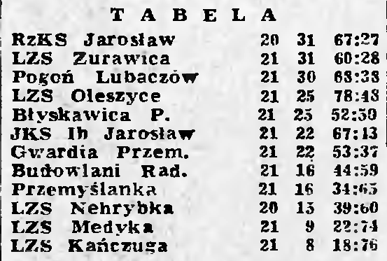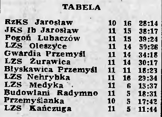 Rok 1959 to niesamowita zmienność losu piłkarzy, dramat, tragedia i entuzjazm. Już od samego początku miała miejsce zacięta rywalizacja o awans pomiędzy trójką drużyn: RzKS Jarosław, Pogoń Lubaczów i Żurawianką. Najpierw prowadziła Pogoń przed RzKS, a gdy Pogoń przegrała w Żurawicy po zaciętym i w dramatycznych okolicznościach meczu 0 : 1, przodownictwo objął RzKS. Dramaturgii dodała tragedia Żurawianki w połowie sezonu. Otóż w niedzielny ranek uległ wypadkowi na stacji PKP w Żurawicy podczas wykonywania obowiązków służbowych utalentowany, ambitny i pracowity zawodnik Żurawianki, zaledwie 23-letni Franciszek Włoch, który następnie zmarł w przemyskim szpitalu. W tą feralną niedzielę Żurawianka miała wyjazd do Kańczugi i naczelnik stacji nie zwolnił Włocha ze służby, pomimo usilnych apeli władz klubu. W następną niedzielę Żurawianka grała na własnym boisku z Pogonią Lubaczów. Tego meczu i jego dramaturgii nigdy nie zapomnę. Nad stadionem flagi spowite kirem, zawodnicy z czarnymi opaskami, minuta ciszy i dźwięki kolejowej orkiestry na czele konduktu żałobnego odprowadzającego zwłoki powszechnie cenionego zawodnika do kościoła i następnie na cmentarz. Jeszcze jedno, przy stanie 0 : 0 na 20 minut przed końcem meczu rzut karny dla Pogoni, broni Kazimierz Mazur, a następnie bramka Rokitowskiego, i zwycięstwo 1 : 0. Przybliżyliśmy się do RzKS o jeden punkt, a do końca rozgrywek jeszcze trzy kolejki i RZKS ma mecz zaległy w Nehrybce. W przedostatniej kolejce jedziemy do Przemyśla na mecz z silną Gwardia i wygrywamy 1 : 0, a rywal remisuje i mamy te same punkty. W ostatnim meczu wygrywamy 4 : 2 u siebie z LZS Oleszyce i rywal również wygrywa. Władze zwlekają z meczem zaległym, który ostatecznie wyznaczono na dzień 08.11.1959 r. i LZS Nehrybka pokonuje RzKS na swoim boisku 1 : 0. Szykuje się mecz na neutralnym boisku. Jednak w dniu 15.11. 1959 r. zapada ostateczna decyzja, że wszystkie mecze RzKS zweryfikowano jako walkowery na korzyść przeciwników za grę we wszystkich meczach nieuprawnionego zawodnika. W ten sposób awansuje Żurawianka. Mecze z RzKS Jarosław były naprawdę dramatyczne, w Żurawicy remis 0 : 0, a w Jarosławiu również remis 1 : 1, po dwóch bramkach naszego pomocnika Rutowicza! Pierwszą strzelił samobójczą w samo okienko po rzucie rożnym w pierwszych minutach meczu, a drugą w ostatniej minucie meczu, po samotnym rajdzie strzelając w to samo okienko!
