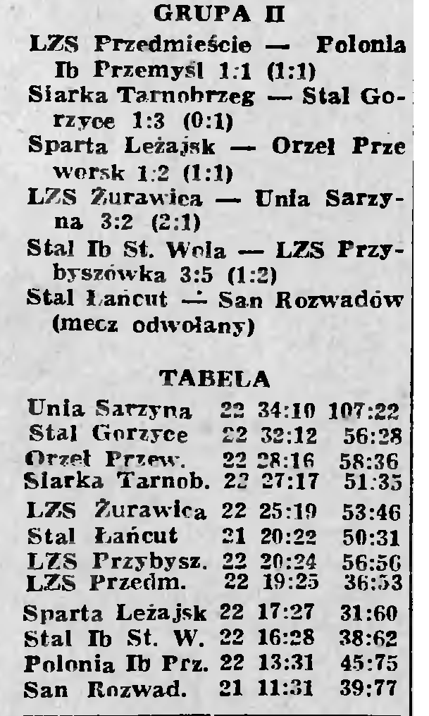 - Dnia 16.04.1960 r. Polonia II Przemyśl - Żurawianka 2 : 4 (0 : 2)