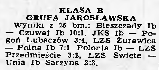 Nowiny miały wyjątkowy wstręt do ukazywania rozgrywek jarosławskiej B Klasy, w przeciwieństwie do B Klasy grupy rzeszowskiej, tarnobrzeskiej, czy podkarpackiej (krośnieńskiej).