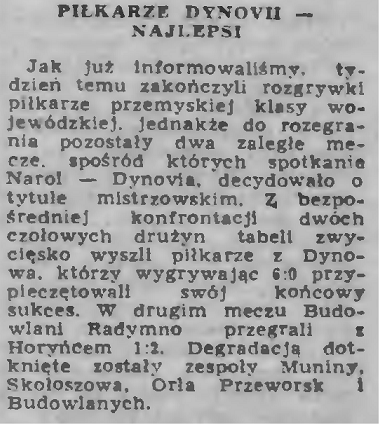 - Dnia 06.09.1981 r. Dynovia Dynów – Żurawianka 1 : 1