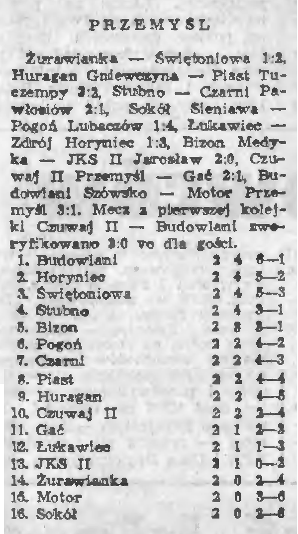 | 4. | Piast Nowosielce | 14 | 12 | 30-29 |
