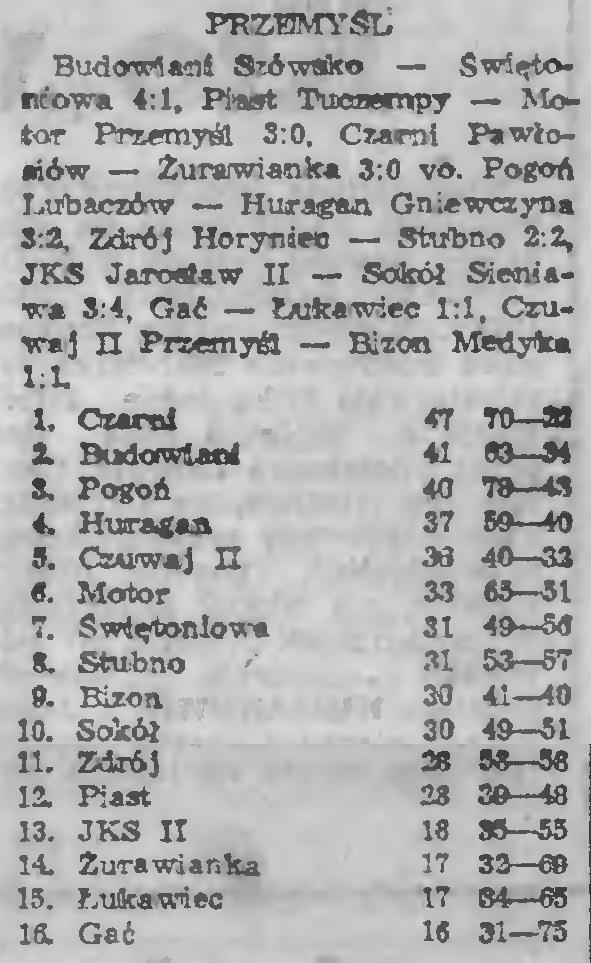 | 10. | Piast Tuczempy | 30 | 30 | 41-48 |